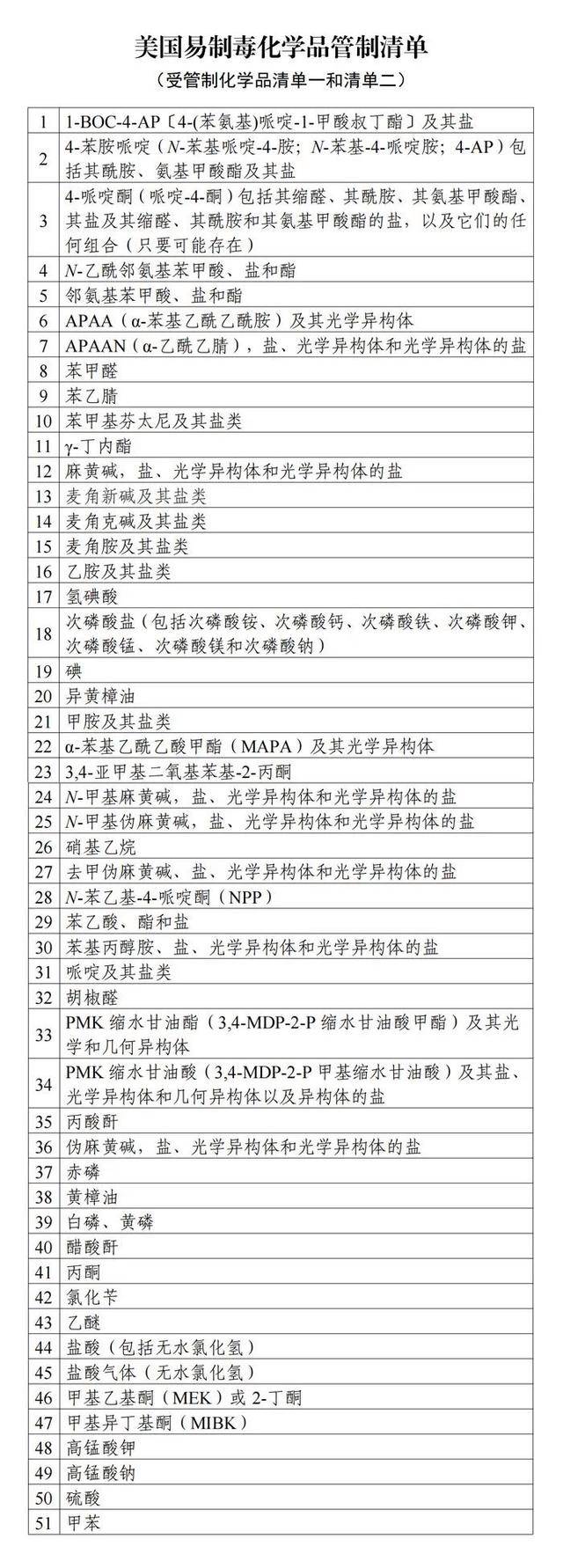 8.涉及美国管制化学品(品种详见附件)的生产、经营、进出口企业和个人应谨慎对待来自美国和墨西哥等相关国家的订单,警惕出口物品被用于制造毒品和可能面临的“长臂管辖”甚至“钓鱼执法”的风险。
