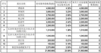 本次上市流通的限售股为公司首次公开发行部分限售股,涉及到的限售股股东数量为11名,限售期限为自公司股票上市之日起12个月。本次解除限售并申请上市流通股份数量21,890,666股,占公司股本总数的比例为23.08%。其中,本次上市流通的战略配售股份数量为2,370,666股,除战略配售股外,本次上市流通的限售股数量为19,520,000股。