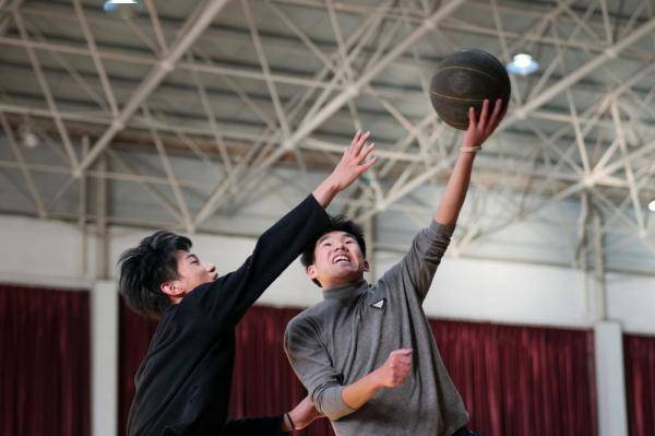 ↑11月16日,邢台市柏乡县职教中心学生在练习篮球。(王光耀 摄)