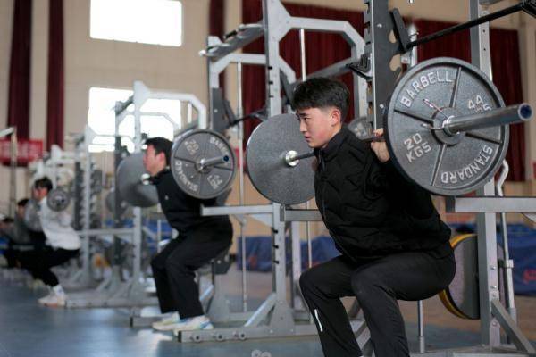 ↑11月16日,邢台市柏乡县职教中心学生在练习杠铃。(王光耀 摄)