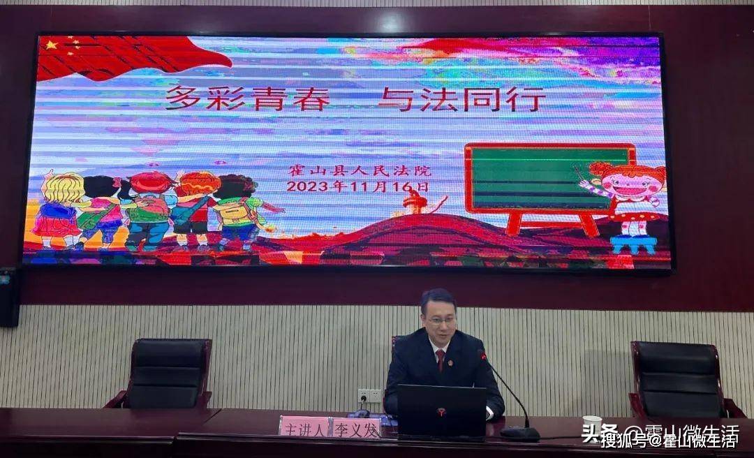 聘任仪式结束后,李院长为霍山文峰小学六年级师生上了一堂题为《多彩青春 与法同行》的法治教育课。