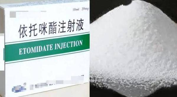依托咪酯是一种不溶于水的白色粉末状物质,为非巴比妥类静脉麻醉药(分子式C14H16N202),主要用于全麻诱导和短时手术麻醉。