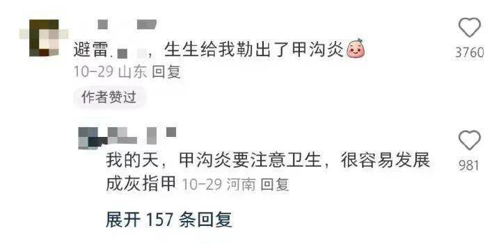 在某社交平台上,有网友晒出照片,称脚指甲被勒出断层,多年医治无效。也有人反映,长时间穿“光腿神器”被磨出甲沟炎。