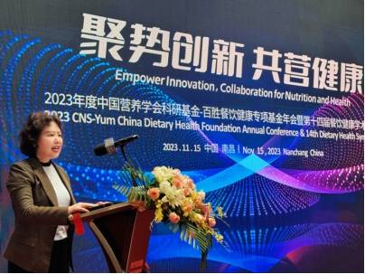 2023年11月15日,中国营养学会科研基金-百胜餐饮健康专项基金年会暨第十四届餐饮健康学术研讨会在江西南昌举行。本次大会紧密结合当下环境,以“聚势创新,共营健康”为主题,汇聚权威专家和学者,共同分享、探讨餐饮营养健康领域的新发展,共同助力健康中国建设。
