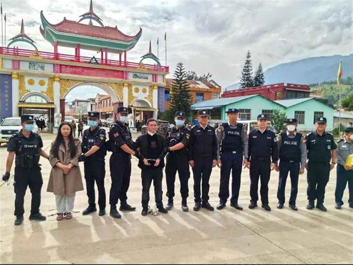 在云南临沧市镇康县南伞口岸向我方移交被抓获的明国平等人(图源:公安部刑侦局)