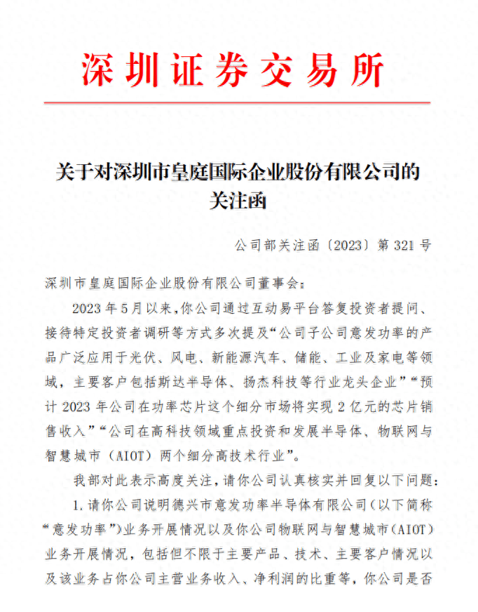 而后在11月15日,皇庭国际突然发布了新公告,称间接控股子公司意发功率2023年1—9月实现营业收入约1.37亿元,占公司营业收入比例为13.50%,净利润为-1641.30万元。可见半导体产业贡献的业绩有限。