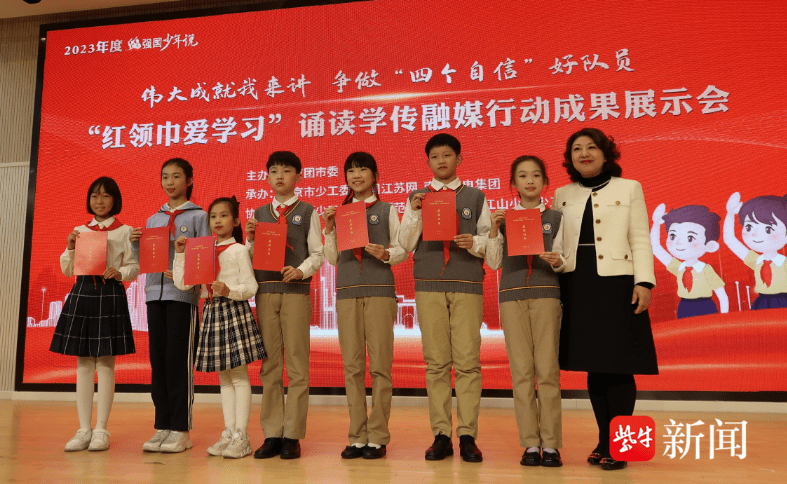 11月17日,由南京团市委主办的2023年度“强国少年说”——“红领巾爱学习”诵读学传融媒行动成果展示会,在南京师范大学附属中学江山小学举行。活动现场,“少先队员讲故事”音频征集活动中的优秀投稿者代表来到现场,用一个个经典故事,带全场百名师生共同感受榜样的力量。