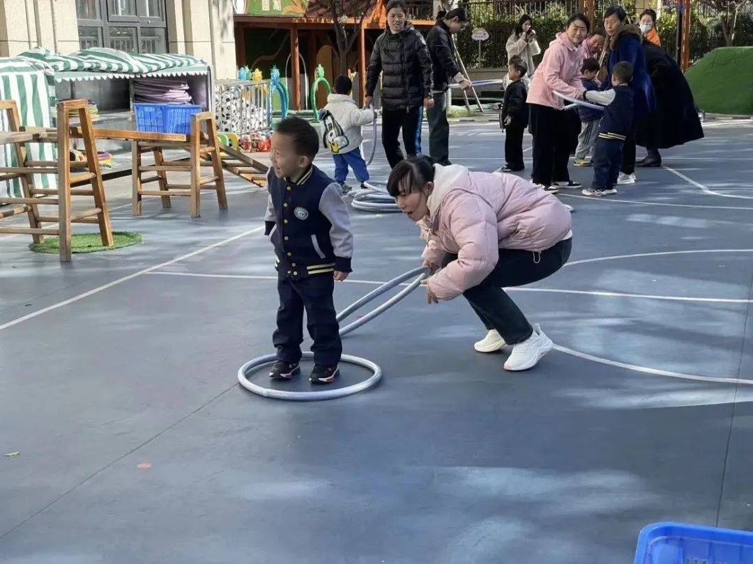 间操结束后,各班组织有趣的亲子游戏,快看,孩子们和家长玩的不亦乐乎!