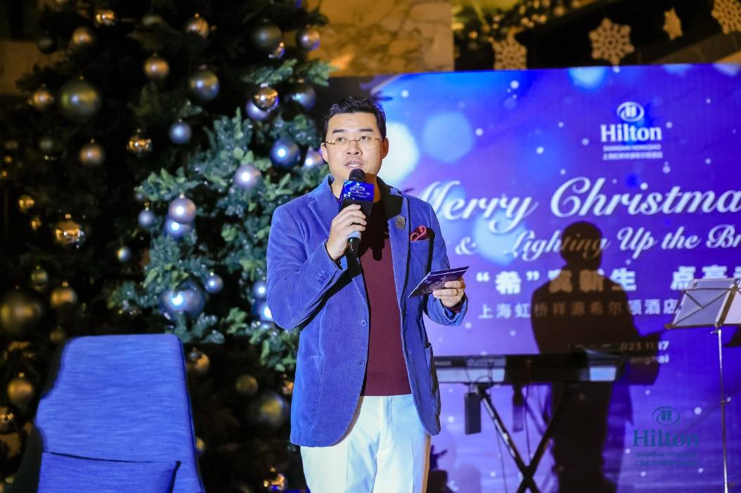 亮灯活动现场圣诞氛围浓郁,一系列的主题表演将现场宾客置身于一个洋溢着浓烈圣诞氛围的场景中。活动伊始,U童艺术中心的小朋友们清亮的圣诞颂歌唤醒每个人心中纯真欢乐的圣诞记忆。活动现场,上海虹桥祥源希尔顿酒店总经理白萌(Rafi Bai)先生致欢迎词,向现场莅临的来宾及媒体表达了诚挚的感谢,并向大家传递希尔顿集团一直秉承着“让世界充满阳光,让大家都感受到热情的温暖,提供与众不同的卓越体验,让每位宾客在每家酒店的每次入住都倍感满意”的愿景以及希尔顿集团“旅行有心益“的企业社会责任。