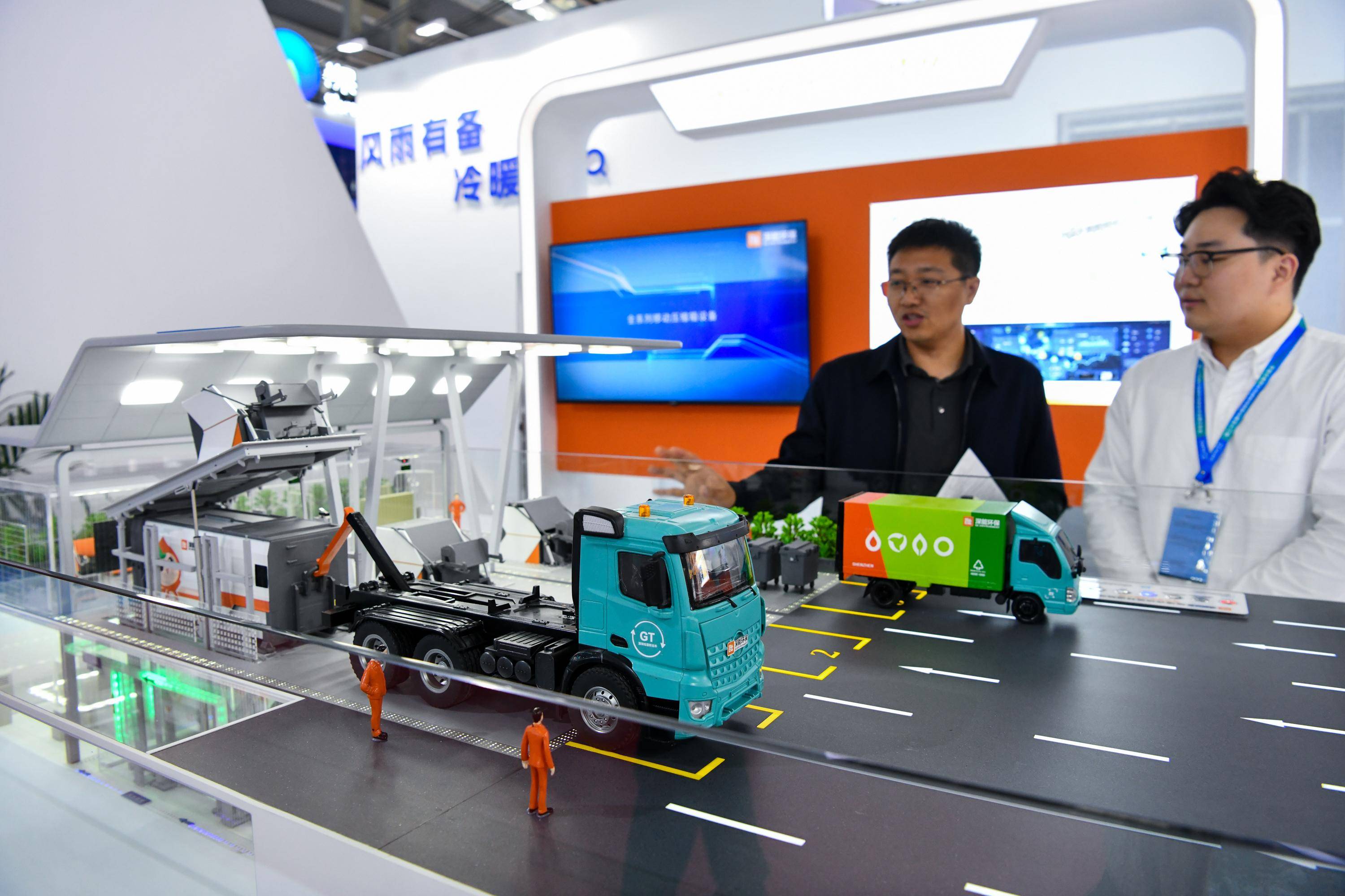 11月15日,观众在第二十五届高交会深圳能源集团展台了解地埋式垃圾转运站。 新华社记者 梁旭 摄