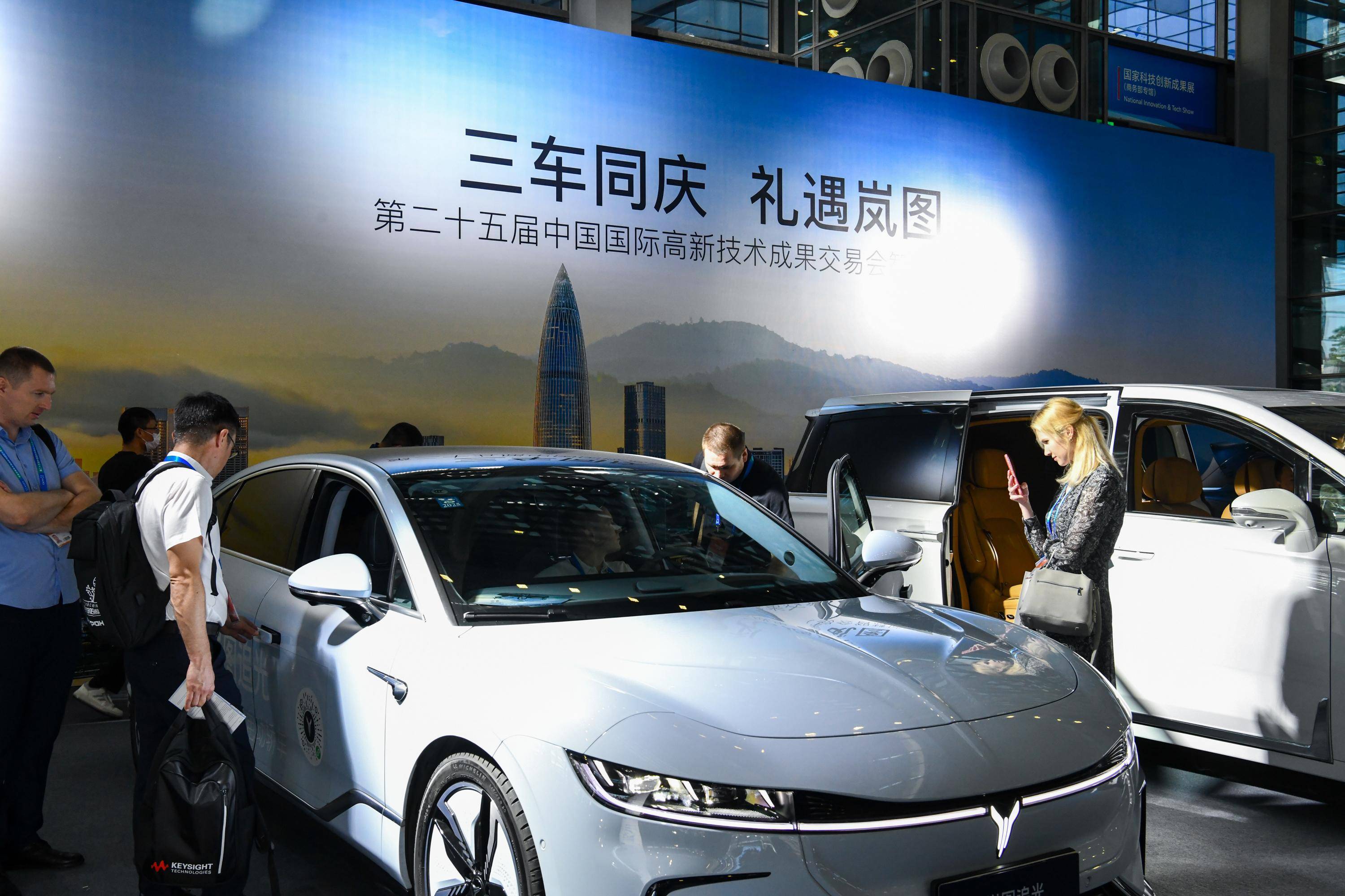 11月15日,观众在第二十五届高交会岚图展台了解一款新能源汽车。 新华社记者 梁旭 摄