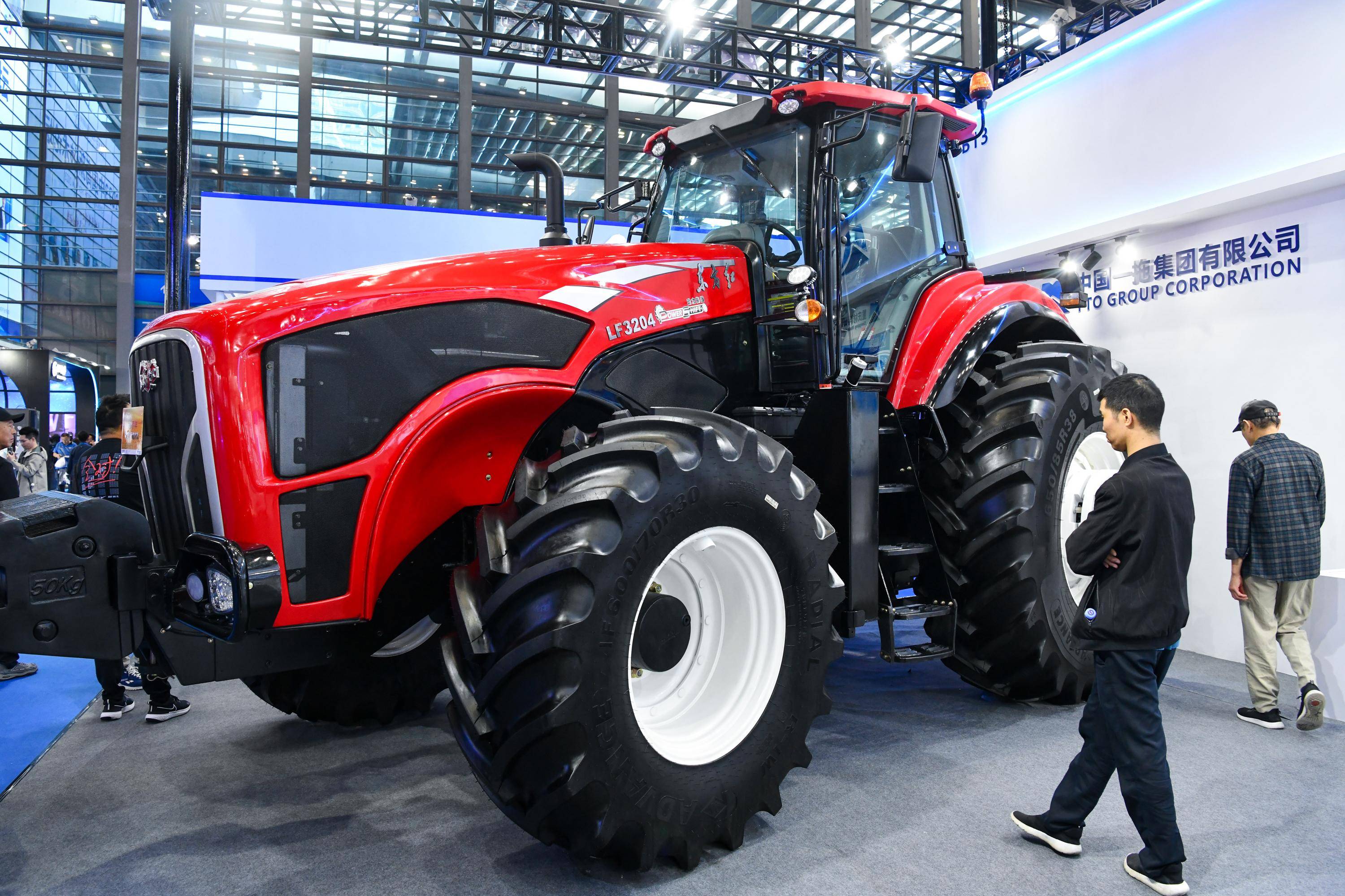11月15日,观众在第二十五届高交会上了解东方红轮式拖拉机。 新华社记者 梁旭 摄