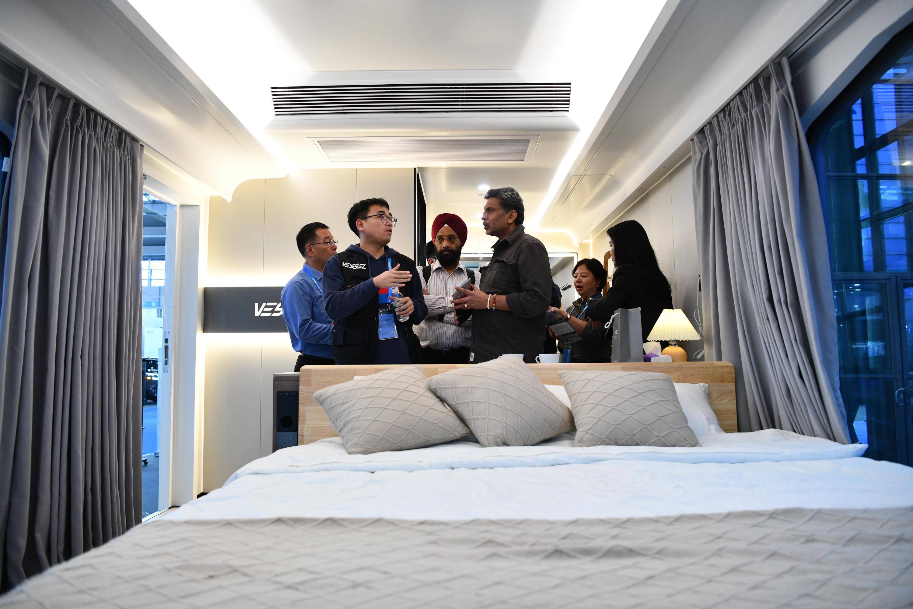 11月15日,观众在第二十五届高交会上了解一款微宿客舱。 新华社记者 梁旭 摄