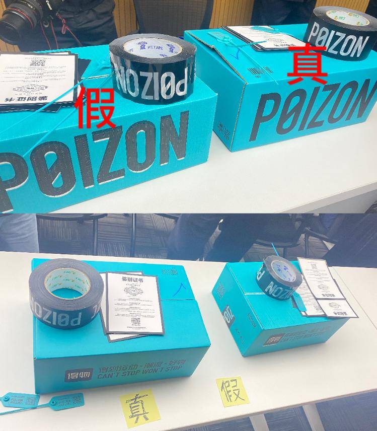 据了解,得物电商平台具有“先鉴定,后发货”的品牌特色,并配以“极光蓝”包装盒、鉴别证书、防伪扣(贴)、品牌胶带和面单等防伪“五件套”,具有较高的市场信誉度。而经过平台方鉴定,相关假冒包材与官方制品相比,在印刷颜色、排版和包装工艺上有着诸多差异,包装内部的“鉴真二维码”也无法扫描出任何产品的鉴定结论。这些假冒的包材既误导消费者购买假冒商品,也严重影响了该电商平台的品牌形象。