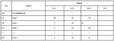某投资者在股权登记日收盘时持有该公司100股股票,采用累积投票制,他(她)在议案4.00“关于选举董事的议案”就有500票的表决权,在议案5.00“关于选举独立董事的议案”有200票的表决权,在议案6.00“关于选举监事的议案”有200票的表决权。