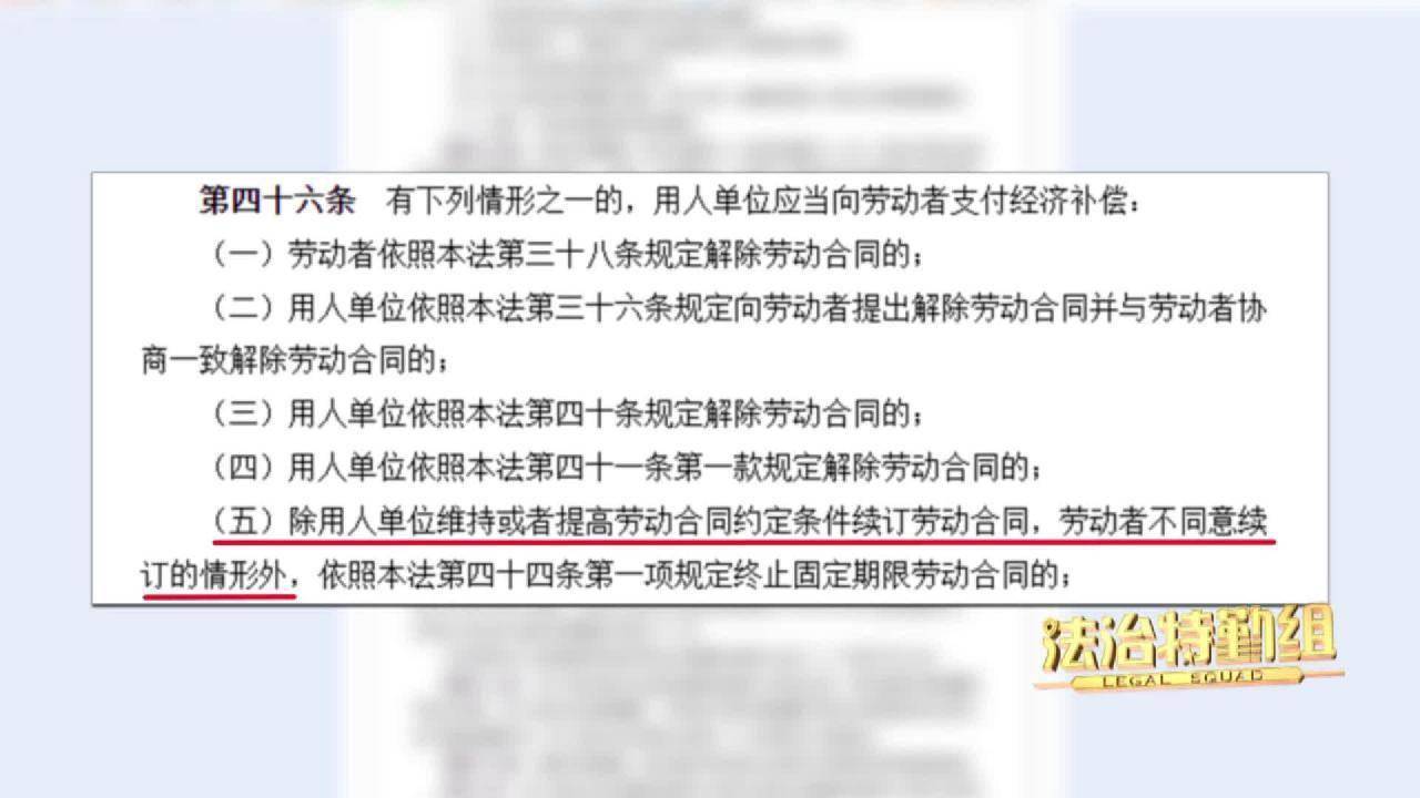 对于仲裁的结果,专家表示《劳动合同法》第46条规定,有下列情形的,用人单位应当向劳动者支付经济补偿。其中,第五项规定,除用人单位维持或者提高劳动合同约定条件续订劳动合同,劳动者不同意续订的情形外。