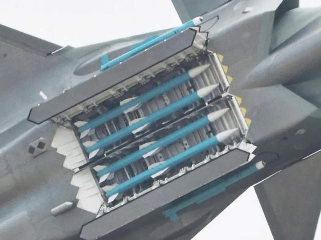 F-22发射侧弹舱的AIM-9时导弹直接从挂架点火(舱门不能关闭)