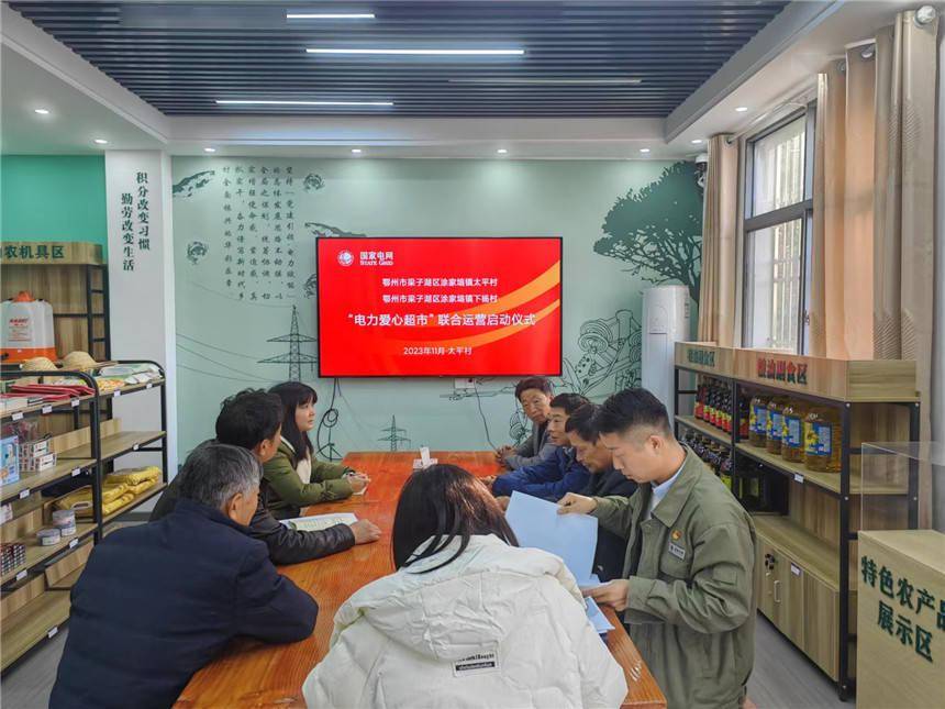 湖北省鄂州市梁子湖区涂家垴镇太平村、下杨村举办“电力爱心超市”联合运营启动仪式。郑紫都摄