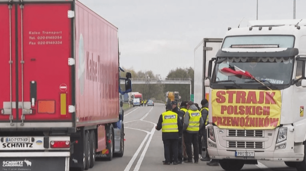 值得一提的是,粮食问题刚告一段落,运输问题又成了波乌两国的导火索。两周前,不少波兰卡车司机前往波乌两国口岸,禁止运输车往返于两国。这些抗议者指出,乌克兰运输业获得了“不公平的优待”,它几乎不用申请任何许可证,就能在欧盟内部招揽生意,同时凭借着“无需交费”的优势,和欧盟运输业打起了价格战。