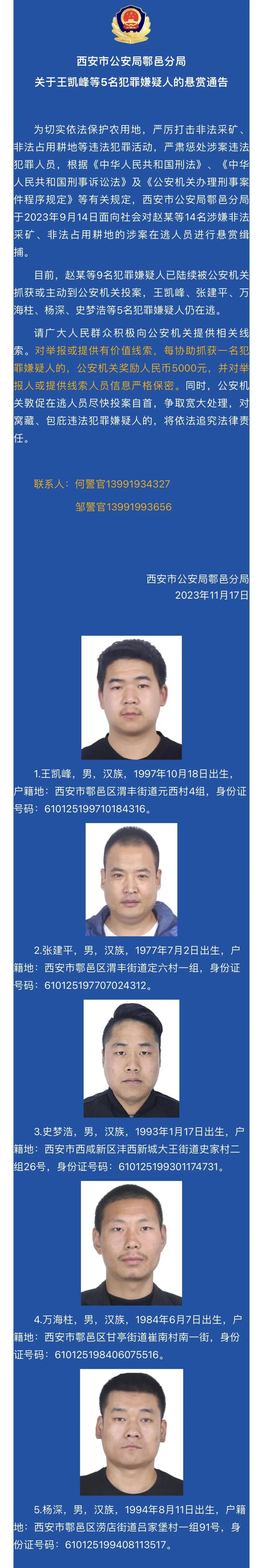 11月17日,西安公安鄠邑分局发布悬赏通告。