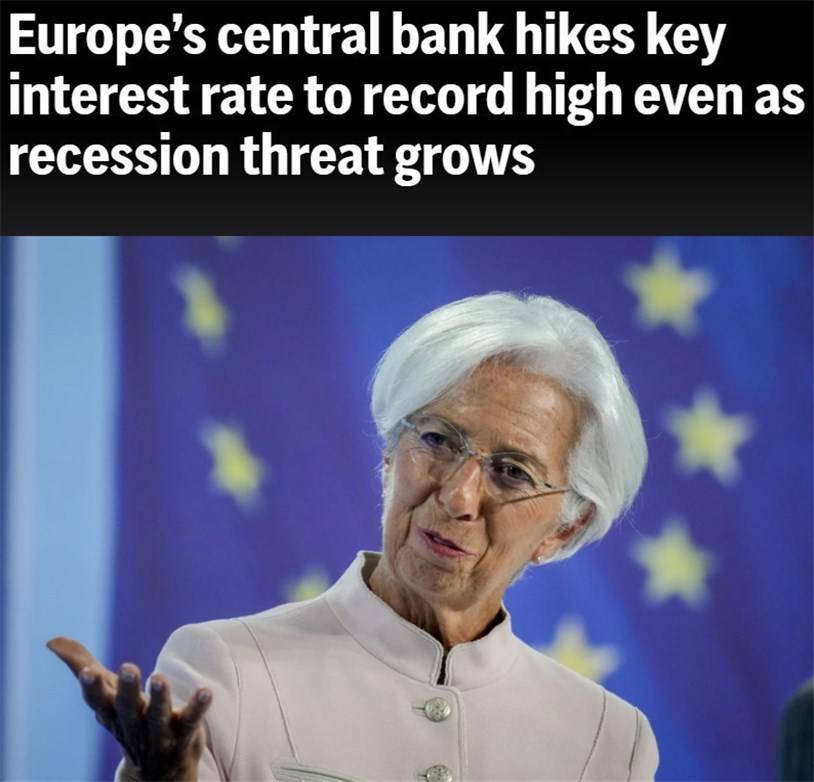 为了控制通胀,也为了应对美联储加息的负面溢出影响,尽管经济下行压力大,欧洲央行仍不得不硬着头皮继续加息。