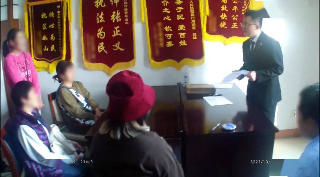 图为法官与申请执行人代表一同到新店现场进行调查