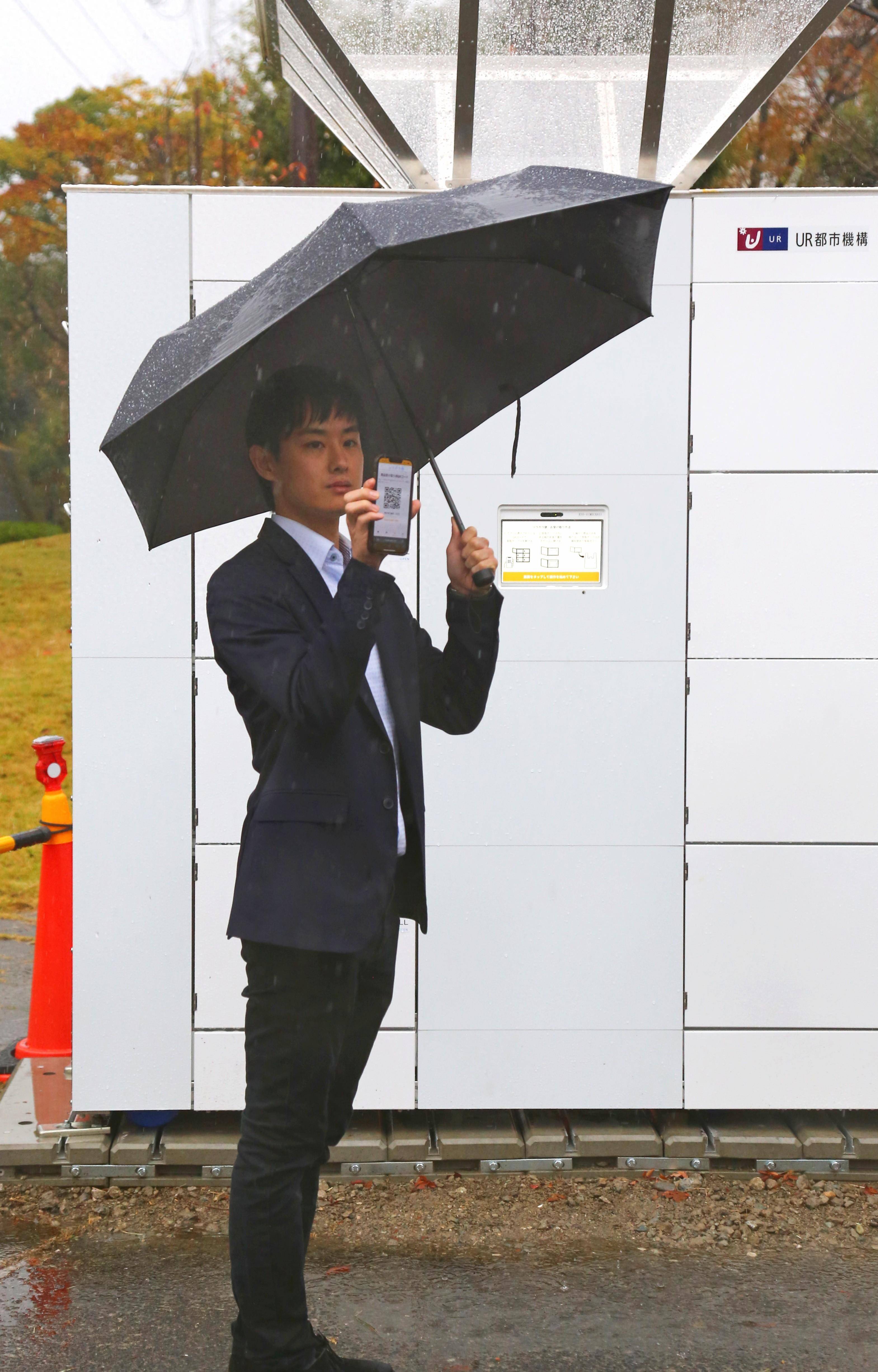 11月17日,在日本川崎市,工作人员在面向媒体的试验说明会上展示取货二维码。 新华社记者 钱铮 摄