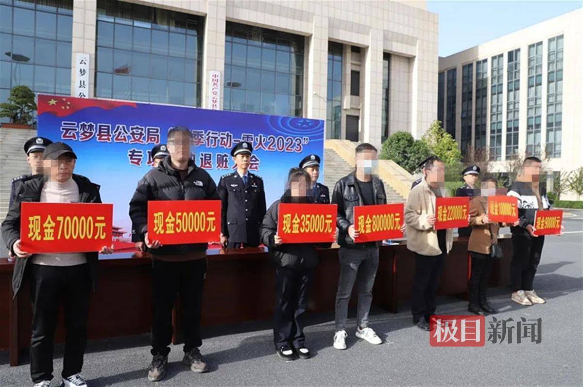 为有效震慑违法犯罪,回应人民群众新期待,展示公安机关严厉打击各类违法犯罪的决心,11月16日,湖北孝感市云梦县公安局举行“雷火2023”专项行动退赃大会,现场将价值400余万元的财物退还给受害人。