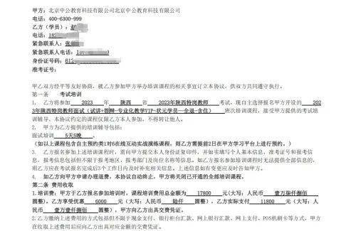 据张先生妻子赵女士说,她于2023年7月21日在安康市汉滨区解放路中公教育安康分公司安康分校报名了名为2023年陕西特岗教师面试的协议课程,学费11800元。按照协议约定,乙方如面试未通过,甲方向乙方退费11800元。赵女士于8月份向中公教育安康分公司申请退费,按照协议应在45个工作日内退还。然而,截至目前,依旧拿不到退款。