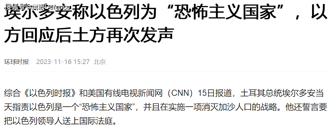 在与德国总理朔尔茨的联合新闻发布会上,有记者提问,想知道土耳其指责以色列实施种族灭绝的依据在哪里,埃尔多安以反问的形式,称以色列正在杀害成千上万的巴勒斯坦人,以色列正在摧毁医院,以色列正在摧毁各种宗教场所,埃尔多安作为一名信徒,对此感到不安。
