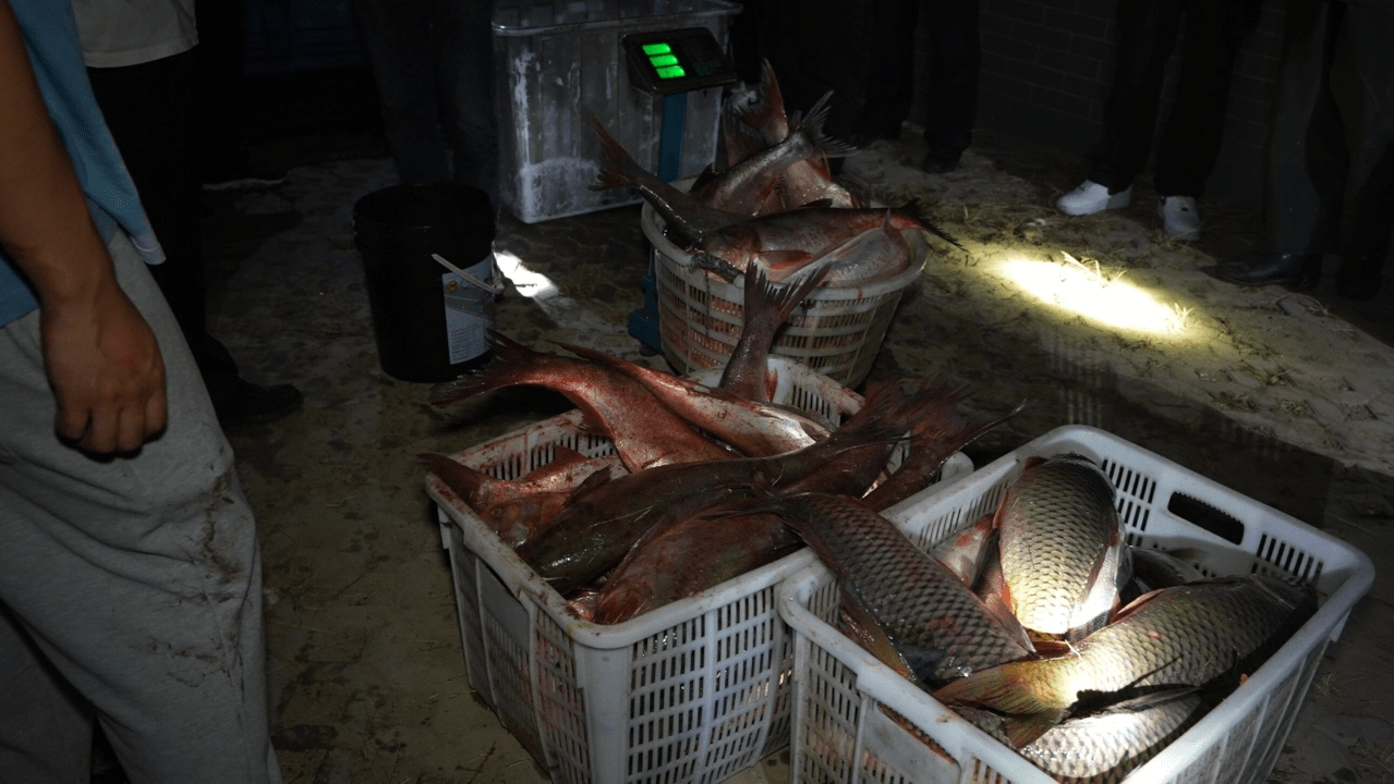 经缜密侦查,专案组联合农业农村局于11月4日晚至5日凌晨,组织警力60余名对太湖湖域突击检查,一举抓获涉嫌非法捕捞水产品的犯罪嫌疑人胡某、夏某亮、周某伟、毕某谋四人,当场查获水产品436千克,作案使用的皮艇2条、运鱼车2辆、丝网1000余米。
