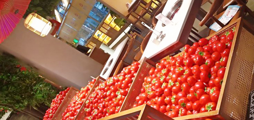 作为一家专门吃番茄锅的店子,刚进门就可以看到摆放在门口的新鲜番茄,一排排的超级鲜艳又可口,满满地挂满小番茄挂饰的头顶树子和红色小纸伞,看起来很是温馨和舒适,每个桌与桌之间的间隙也很是充分,能够保证每桌之间的私密性。