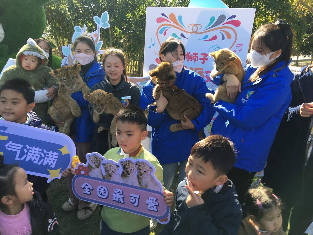 据介绍,今年8月份,小狮子们出生在金牛湖野生动物王国,它们的成长历程见证了金牛湖野生动物王国在保护物种多样性方面的努力和成果。 “这是一次非常难得的与小狮子们互动的机会,给我带来了非常难忘的回忆。”游客张先生表示。在本次生日派对活动中,游客们不仅可以零距离观察小狮子,感受它的天性和活力,还可以参与制作小狮子生日蛋糕,不少小朋友还抚摸了小狮子。