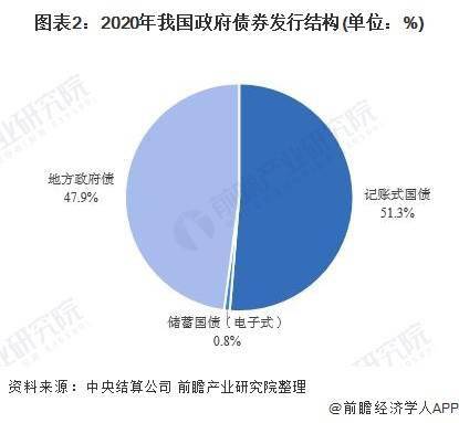 2020年我国政府债券产品发行结构显示,记账式国债发行规模最大,约6.91万亿元,占比51.32%;其次是地方政府债,发行规模约6.44万亿元,占比47.87%;而储蓄国债(电子式)仅占0.81%。