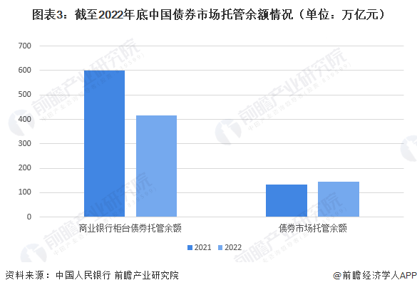 截至2022年12月末,债券市场托管余额达到144.8万亿元,同比增长11.3万亿元。其中,银行间债券市场托管余额125.3万亿元,交易所市场托管余额为19.5万亿元。此外,商业银行柜台债券托管余额为416.1亿元。