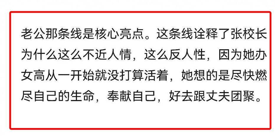此外,观众们纷纷吐槽电影中张桂梅和她老公的感情戏,认为这一情节显得莫名其妙,仿佛只有在老公去世后,她才变得如此热爱教育和孩子。老公的这条情感线成为剧中的核心亮点,揭示了张校长为何显得如此冷漠,仿佛与人情相悖。原来,她在办女高的初衷并非为了活得更好,而是希望尽早燃尽自己的生命,奉献一切,与丈夫在另一个世界团聚。