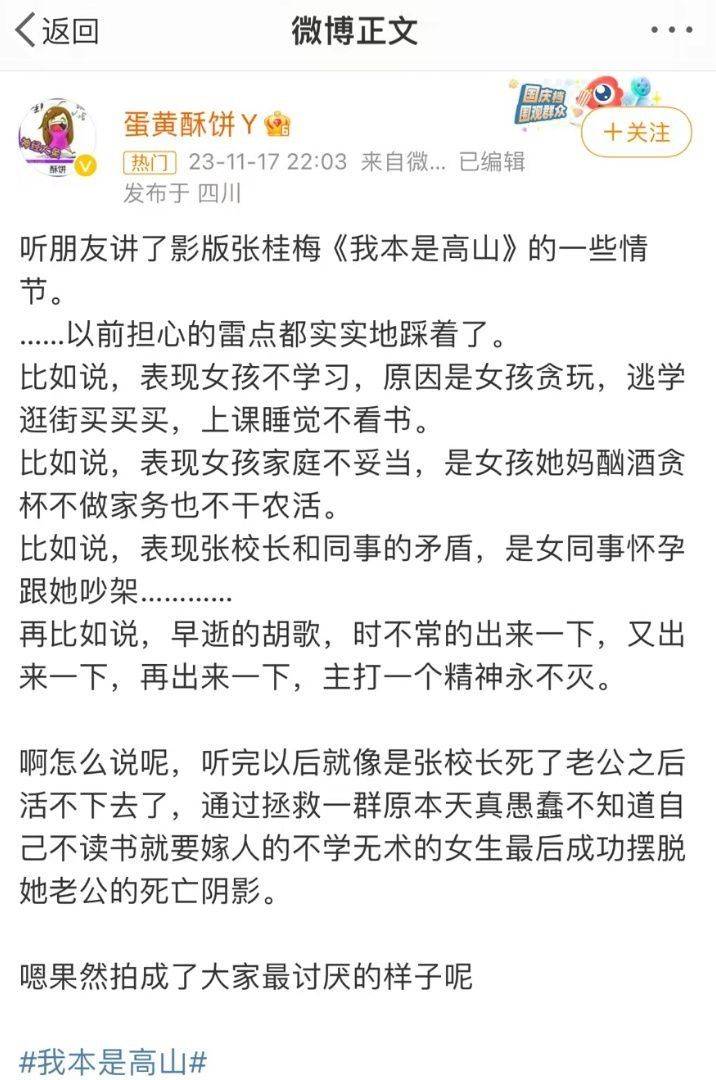 然而,随着电影《我本是高山》的热播,一些细心的网友开始发现了一些似是而非、背离事实的黑点,引发了一波观众的热议。尽管电影主旨强调女性的力量,但在呈现女性形象的过程中却似乎不免陷入了一些刻板印象的困境。