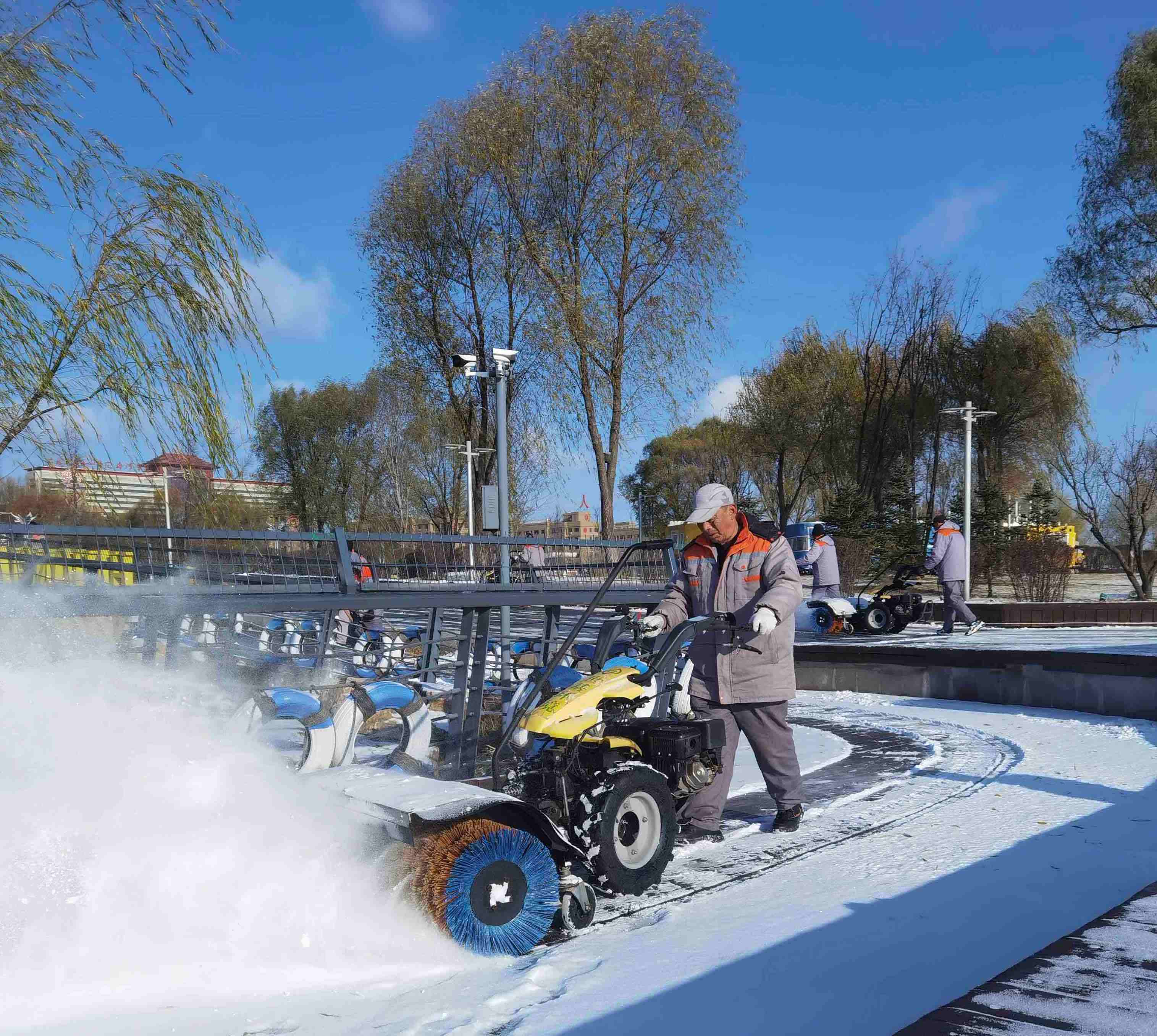 11月17日早6时许,梅河口城区上空雪花飘落,梅河口世基环境有限公司机扫作业车辆第一时间启动,采取“边下边清、边清边运、雪停路净”的方式展开除雪作业;清扫队员,提前集结、全员出动,灵活运用人员排扫、便携式扫雪机和吹雪机等先进设备,对主街主路、人行步道、支次巷路“人机结合”地进行清扫作业,仅仅一上午时间,就完成了积雪转运和清理细化工作。