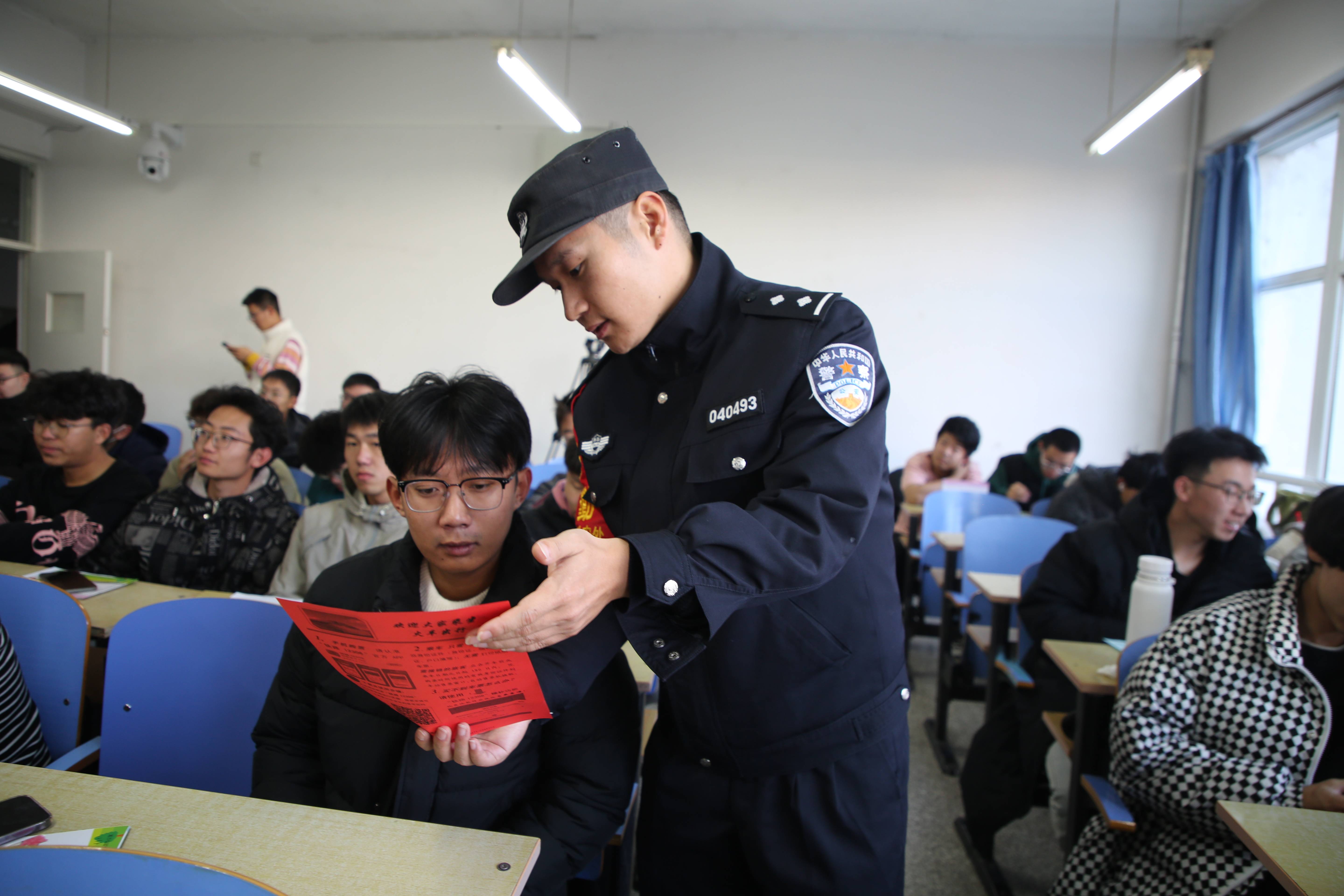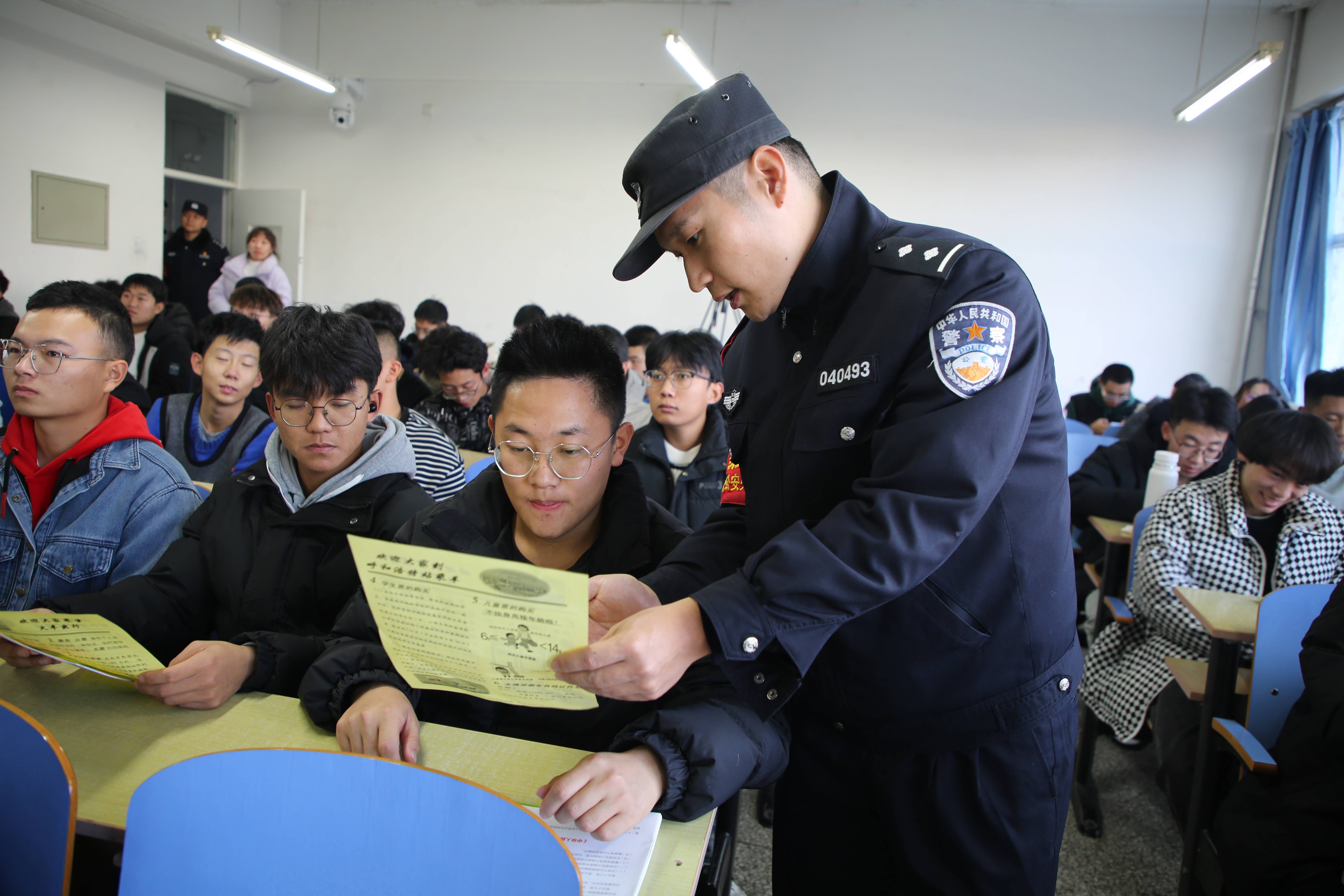 活动期间,民警通过互动问答等方式,用通俗易懂的语言为师生们普法,呼吁广大师生严格遵守各项乘车规定,同时提升自我防范意识,当遇到霸座、猥亵、强讨等情况时应积极报警,乘车时多注意周围张贴的报警标识和报警二维码,避免自身生命财产受到不法侵害。民警还在教室内流动展示宣传展板、张贴标语,发放宣传单,营造了浓厚的宣传氛围,有效筑牢师生群体的安全防线。