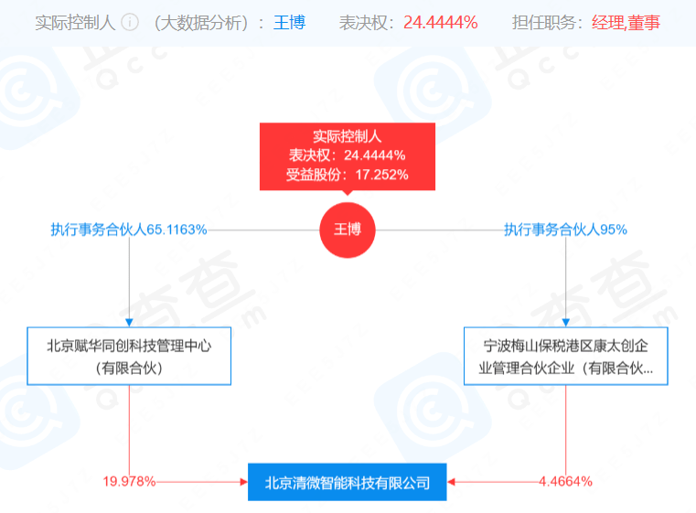 企查查显示,目前清微智能的实际控制人为王博,他毕业于北京邮电大学,曾任汉柏科技CTO。