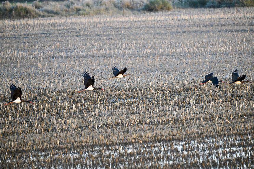 人民网雄安11月19日电 (记者李雪晴)黑鹳、赤嘴潜鸭、白鹭、天鹅……近日,雄安新区安新县生态摄影师张学农拍到众多珍稀鸟类到白洋淀越冬,其中,国家一级保护野生动物黑鹳数量达10余只,是白洋淀有黑鹳记录以来数量最多的一次。