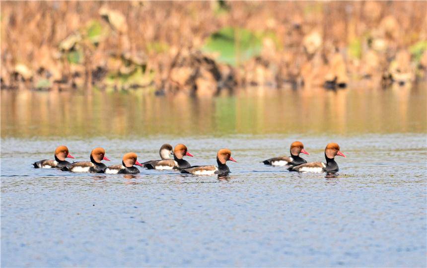 成群赤嘴潜鸭在白洋淀栖息。张学农摄