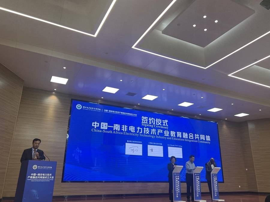 访问团代表参与中国—南非电力技术产业教育融合共同体签字仪式。南非比勒陀利亚孔子课堂供图