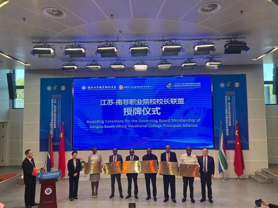 访问团参加江苏-南非职业院校校长联盟授牌仪式。南非比勒陀利亚孔子课堂供图