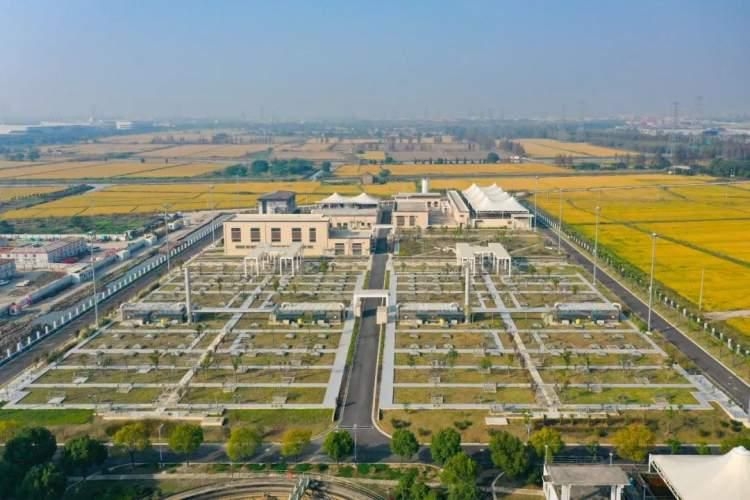 从空中俯瞰,厂区外秋粮遍野金黄,厂区内则绿植悠悠,呈现出一幅和谐共生的生态画卷。