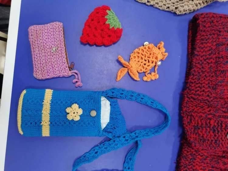 走进活社区活动室,团队成员们正在对着桌上一件件精美的彩色毛衣进行编织。在随行的袋子里,她们还带来了一包包已经裹好的织物,每当被问及都如数家珍,“这是帽子,这是围巾,这是手套,还有一些衣物上的小装饰,比如小草莓、小金鱼……”一个个绒线编结而成的小动物活灵活现,甚是可爱。