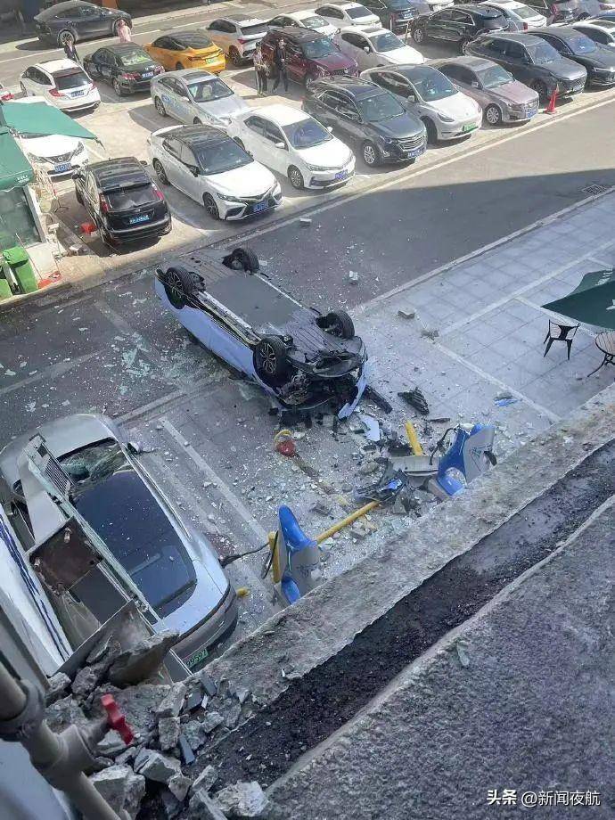 另通过现场画面了解到,由于该车辆撞断了楼上的护栏,护栏掉落还砸伤了停在楼下充电的另一台小鹏P7。