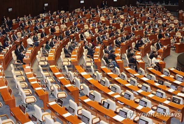 由于国民力量(执政党)全体退席放弃表决,共同民主党和其他进步阵营全会对《关于工会及劳动关系调整的法律》修正案(俗称“黄色档案袋法”)进行表决时,只有民主党、正义党等在野阵营共174名议员参加投票。该案最终以173人赞成、1人弃权获得通过。