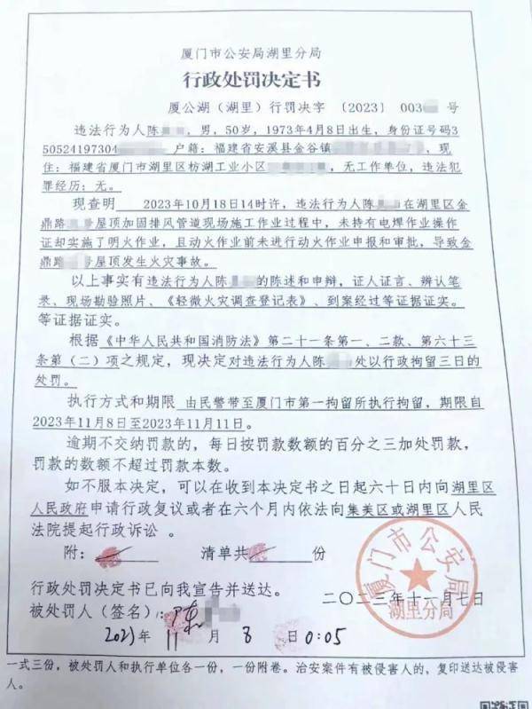 原标题:楼顶起火,50岁男子被行拘!