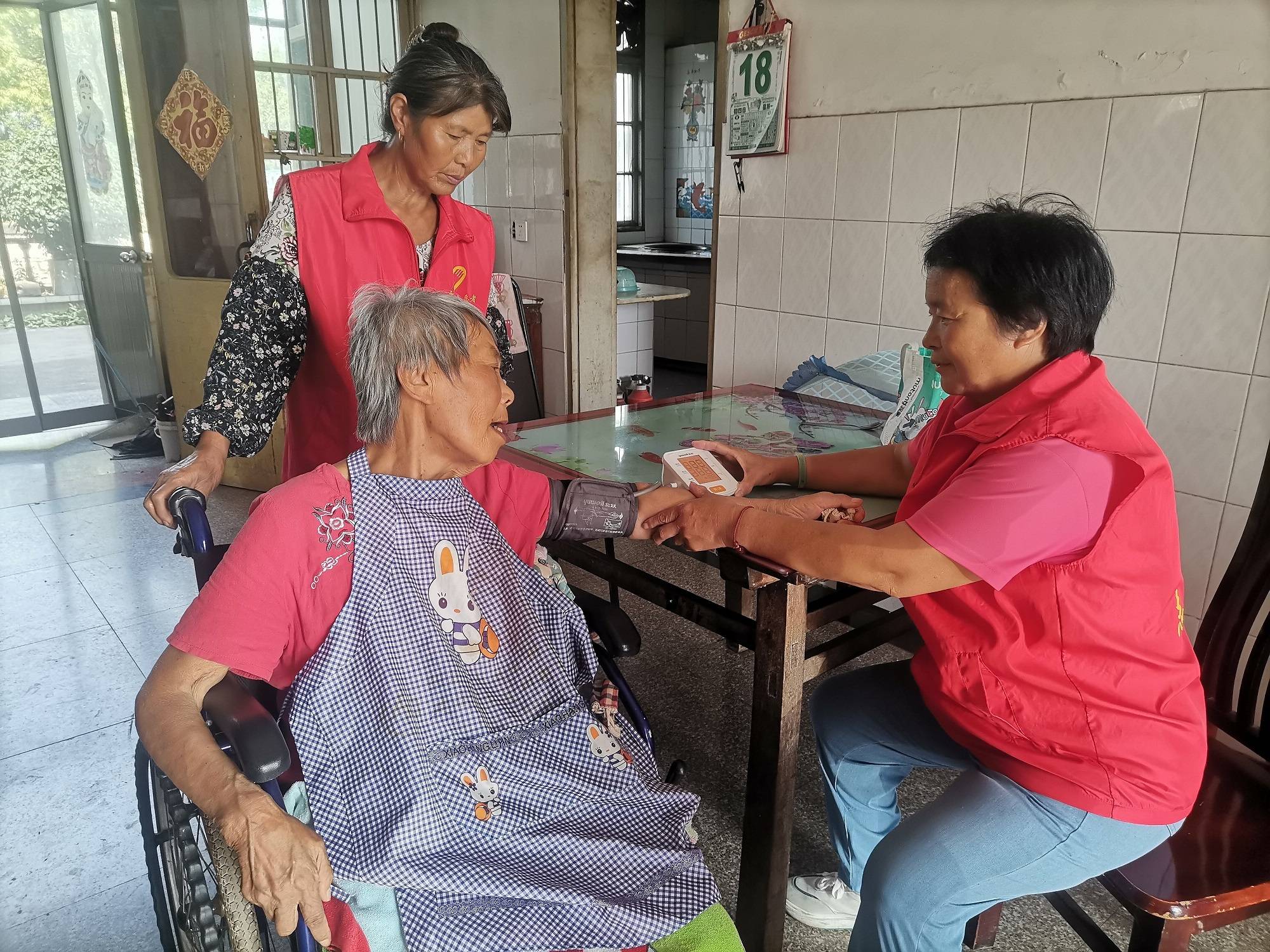 赵箭芝(右一)为老人量血压